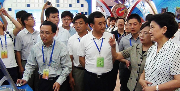 時(shí)任中央政治局委員、中央書記處書記,中宣部部長(zhǎng)劉奇葆在江蘇省委領(lǐng)導(dǎo)陪同下考察鳳凰創(chuàng)壹開(kāi)發(fā)的VR仿真教學(xué)培訓(xùn)系統(tǒng)