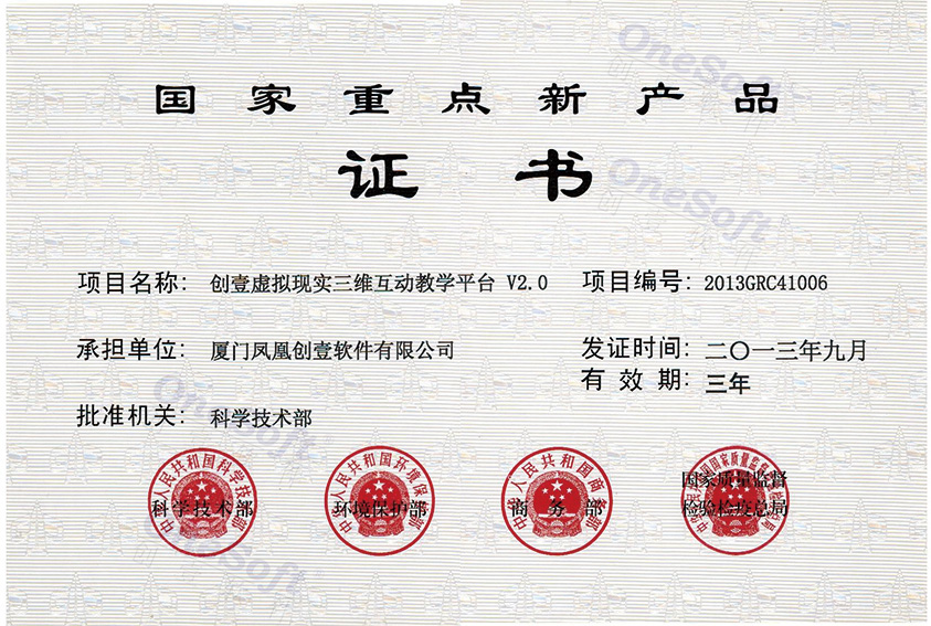 國(guó)家重點(diǎn)新產(chǎn)品證書