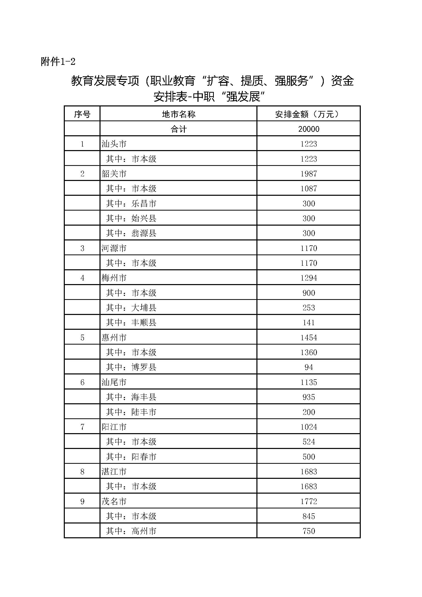 根據(jù)《廣東省省級(jí)財(cái)政專項(xiàng)資金管理辦法(修訂)》(粵府〔2023〕34號(hào))等文件要求,現(xiàn)將我省2024年教育發(fā)展專項(xiàng)資金(職業(yè)教育“擴(kuò)容、提質(zhì)、強(qiáng)服務(wù)”)60000萬元的分配方案及績效目標(biāo)(見附件1、2)予以公示。公示期自2023年12月26日至2024年1月1日,共7天。