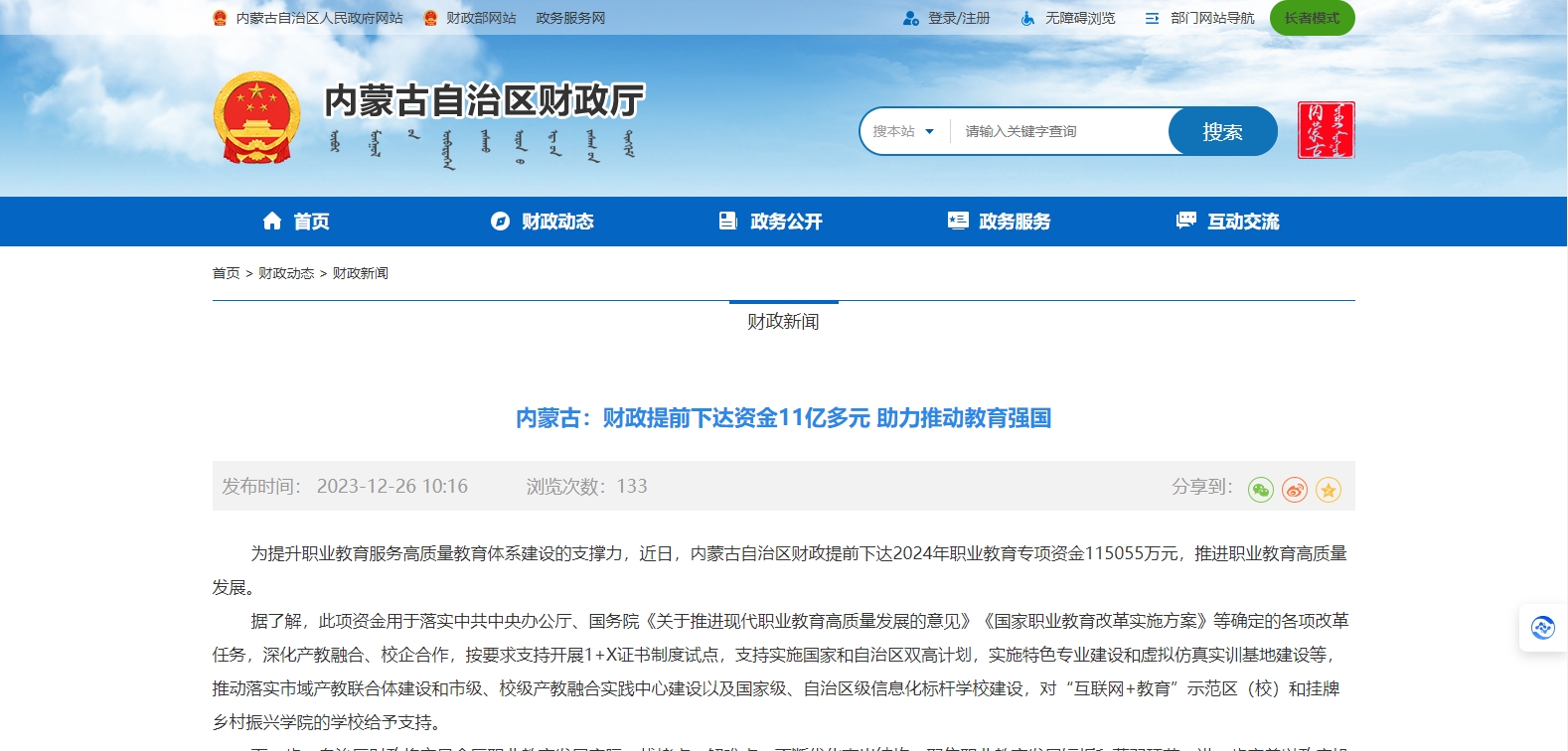 為提升職業(yè)教育服務高質量教育體系建設的支撐力,近日,內蒙古自治區(qū)財政提前下達2024年職業(yè)教育專項資金115055萬元,推進職業(yè)教育高質量發(fā)展。