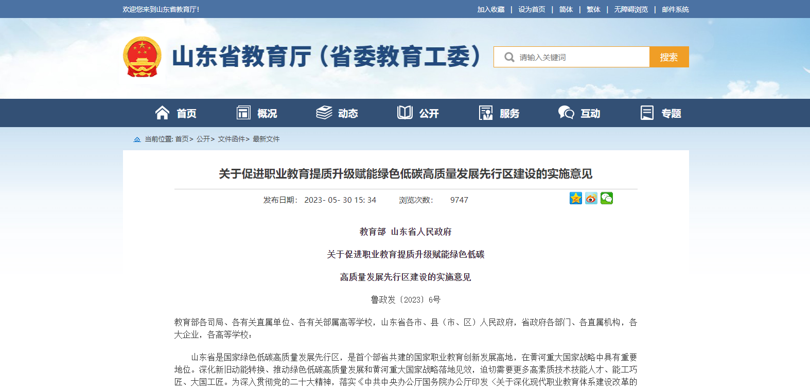 教育部 山東省人民政府雙部門發(fā)布關(guān)于促進(jìn)職業(yè)教育提質(zhì)升級賦能綠色低碳 高質(zhì)量發(fā)展先行區(qū)建設(shè)的實(shí)施意見