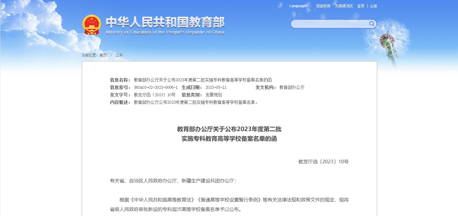 新增22所職校!教育部公布第二批高等專(zhuān)科學(xué)校備案名單