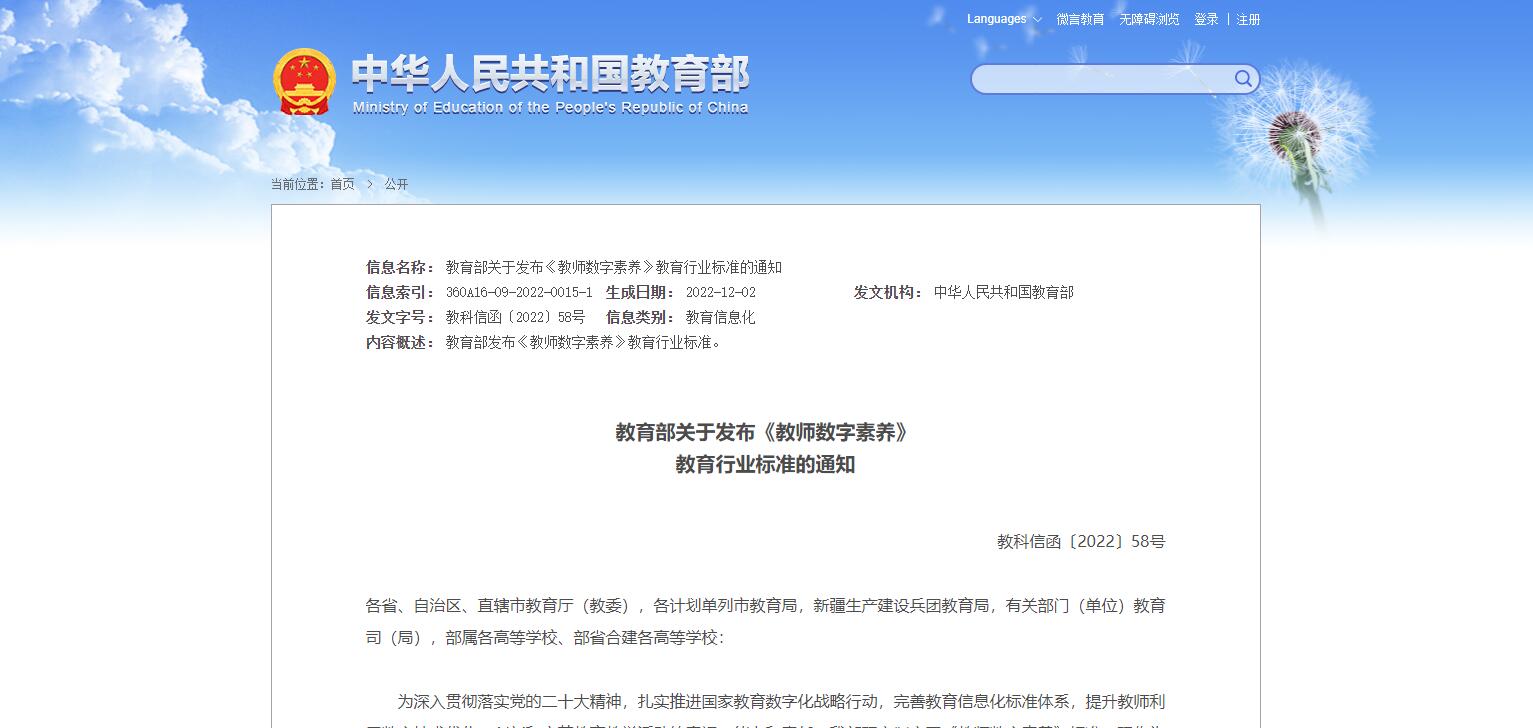 教育部關(guān)于發(fā)布《教師數(shù)字素養(yǎng)》教育行業(yè)標準的通知