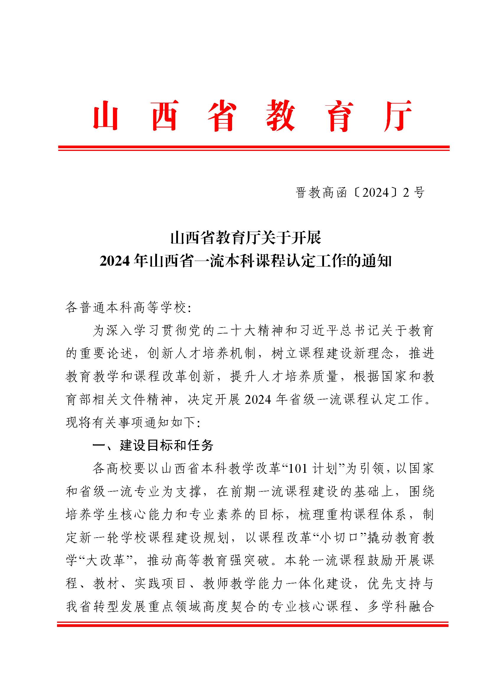 山西省教育廳發(fā)布關(guān)于開(kāi)展 2024 年山西省一流本科課程認(rèn)定工作的通知