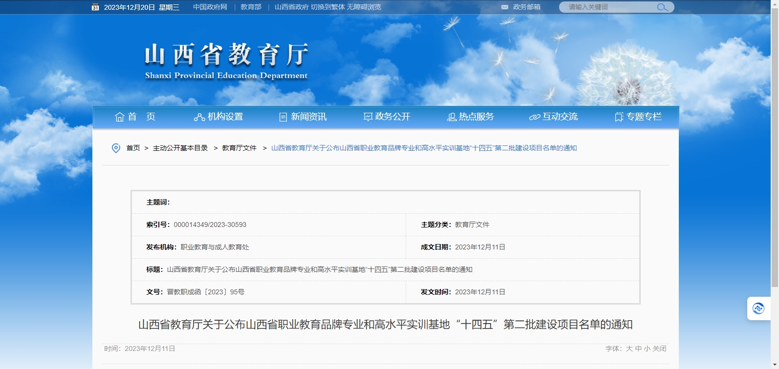 山西省教育廳關(guān)于公布山西省職業(yè)教育品牌專業(yè)和高水平實(shí)訓(xùn)基地“十四五”第二批建設(shè)項(xiàng)目名單的通知