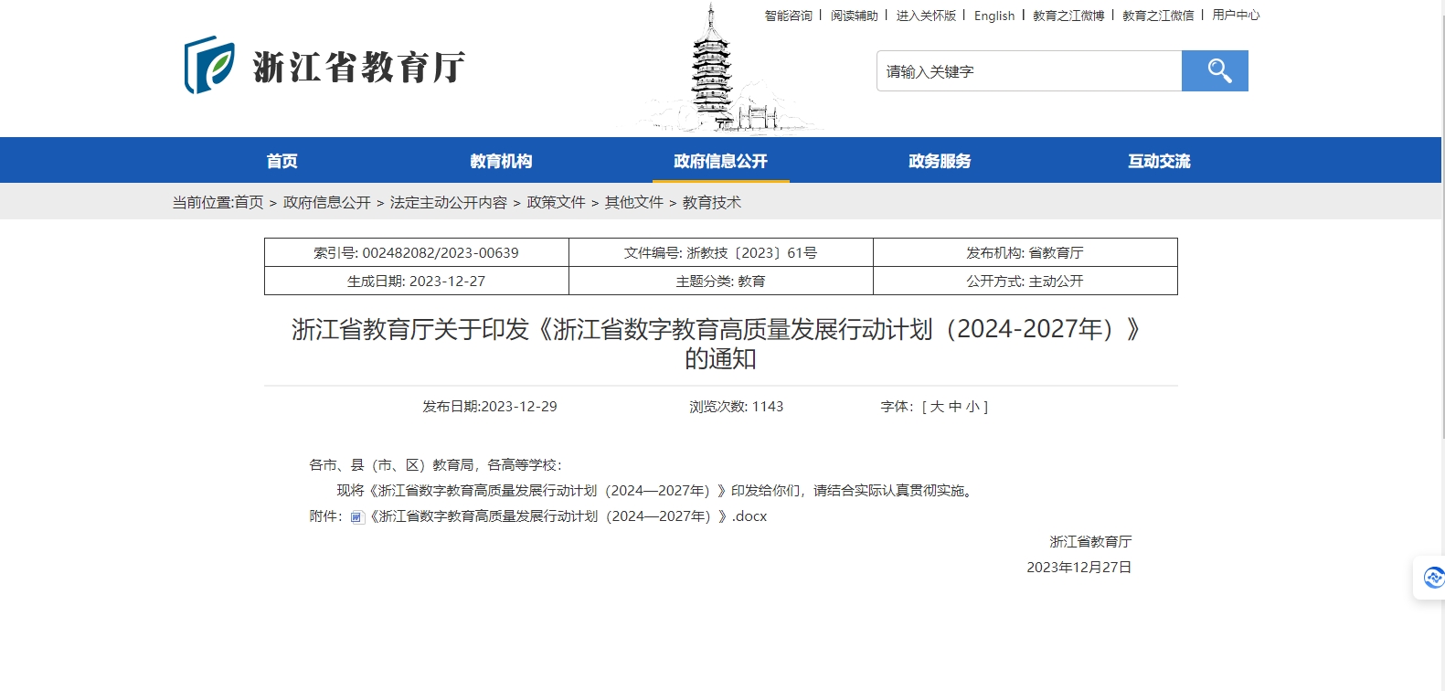 浙江省教育廳關(guān)于印發(fā)《浙江省數(shù)字教育高質(zhì)量發(fā)展行動(dòng)計(jì)劃(2024-2027年)》的通知