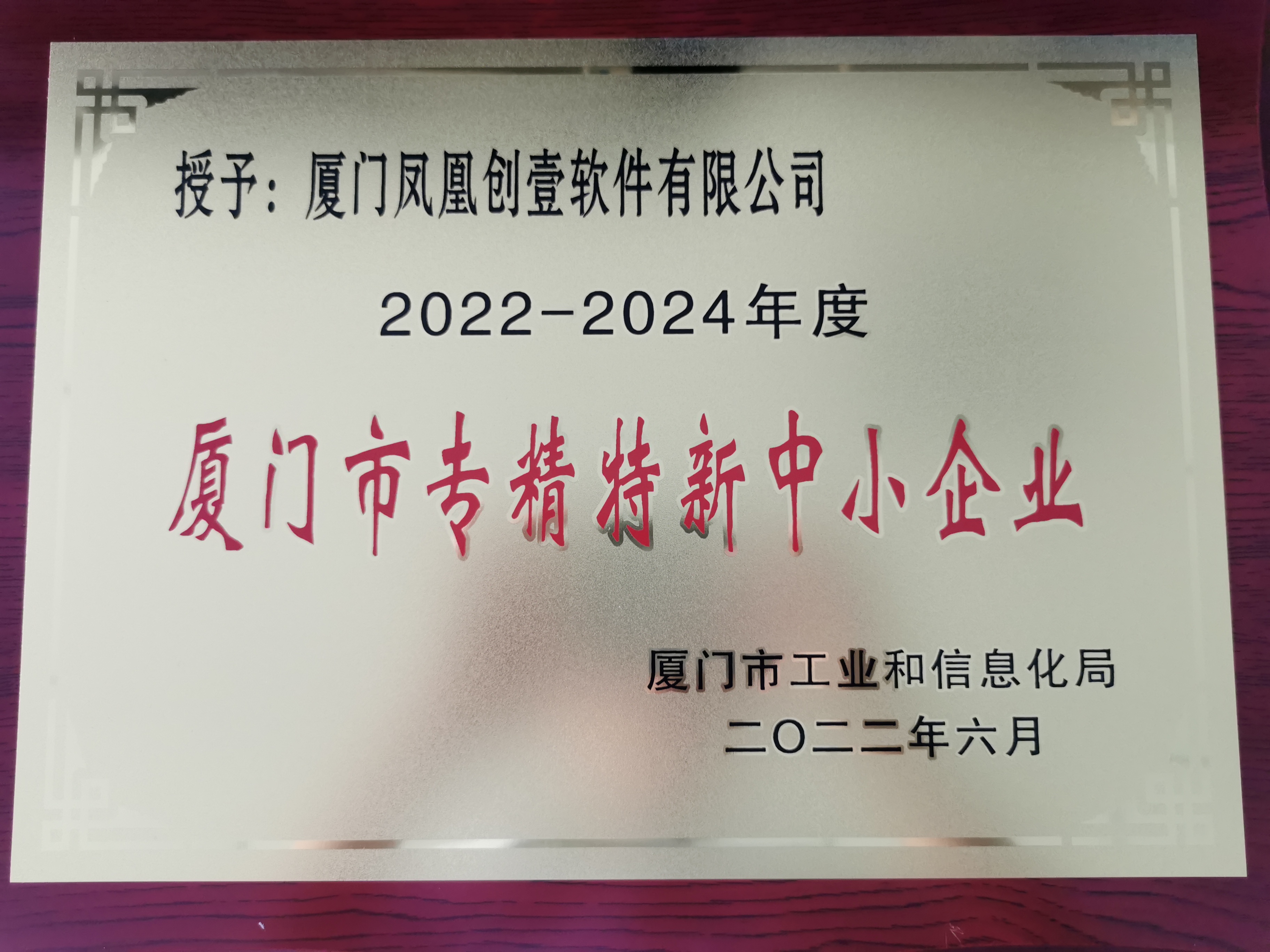 新榮譽(yù)!鳳凰創(chuàng)壹2022年廈門市“專精特新”中小企業(yè)獎牌到了